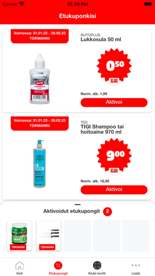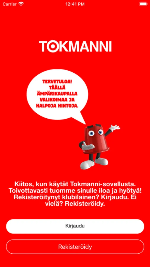 Tokmannin mobiilisovellus on käytettävissäsi, jos olet Tokmanni Klubi -etuohjelman jäsen. Jos et vielä ole liittynyt halpojen hintojen ystävien joukkoon, voit tehdä sen kätevästi esimerkiksi mobiilisovelluksen avulla. Tokmanni Klubin jäsenyys ja Tokmannin mobiilisovelluksen käyttäminen ovat sinulle täysin ilmaisia.