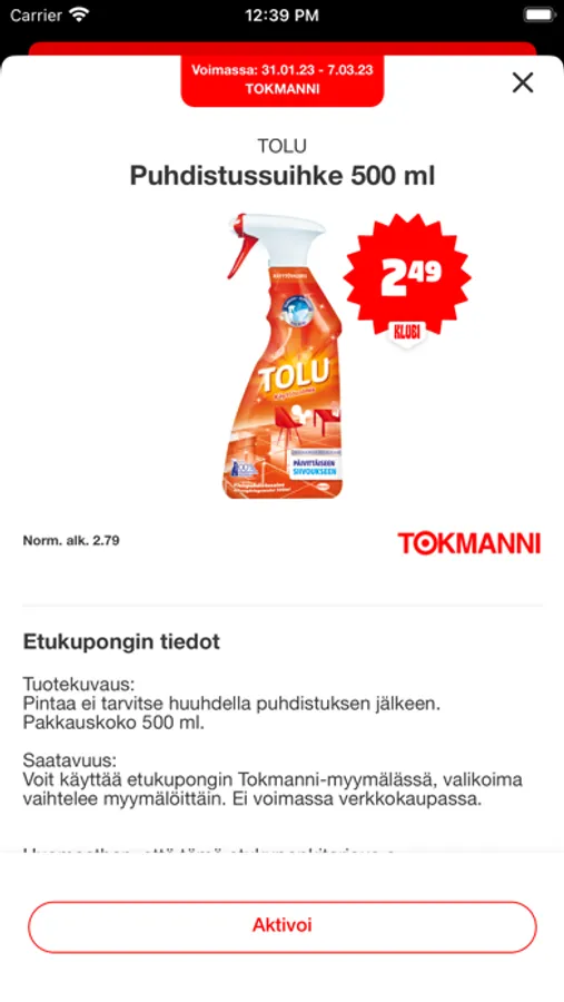 Lataamalla Tokmannin näppärän mobiilisovelluksen voit esimerkiksi