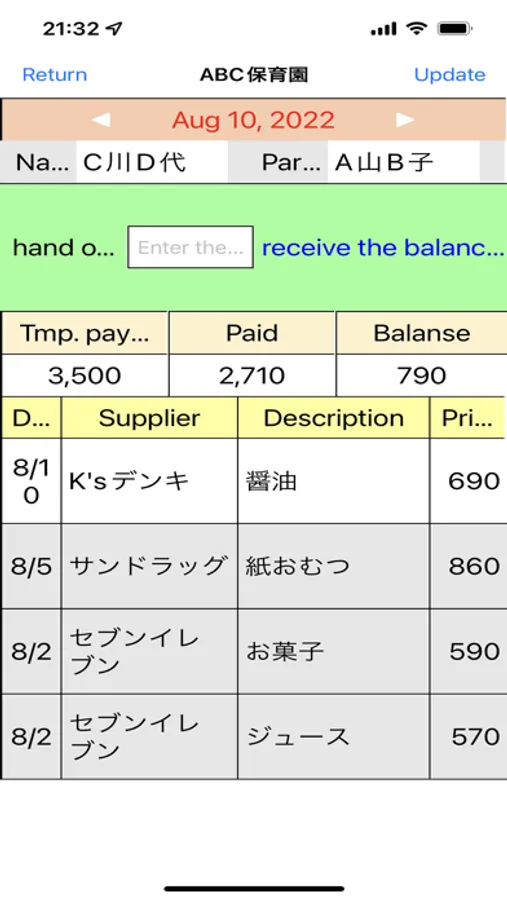 - After shopping, enter the supplier, description, and amount. (cannot be omitted)