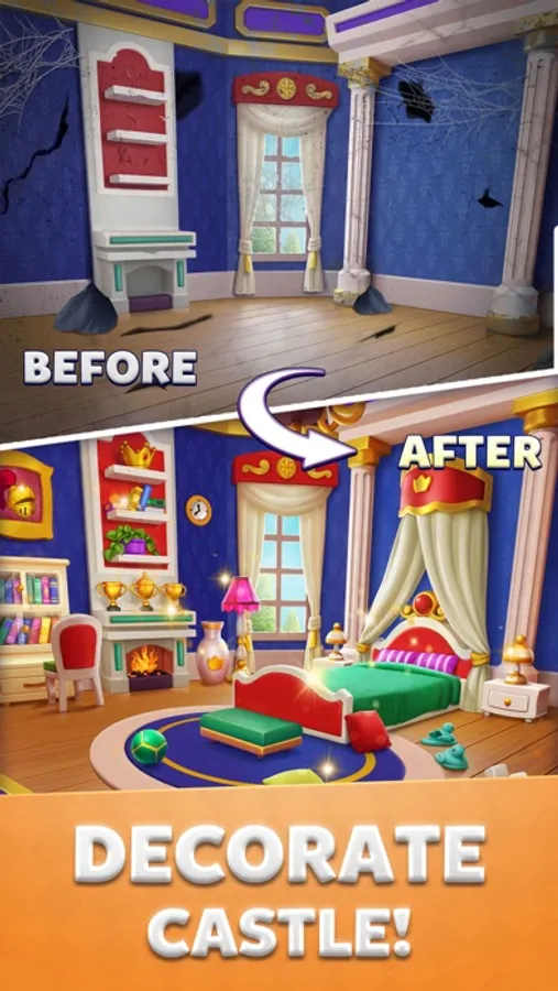In order to save the king and princess, you need to break the bricks in a variety of different levels. In this fun journey, you will solve exciting puzzles, earn coins to unlock new areas, decorate the royale castle, and get extra boosters to continue your saga.
