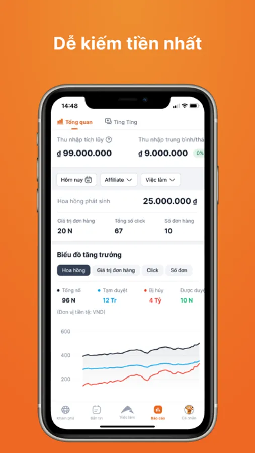 - Doanh thu bán hàng và thu nhập được cập nhật mỗi phút giúp dễ dàng theo dõi và tạo động lực kiếm tiền online