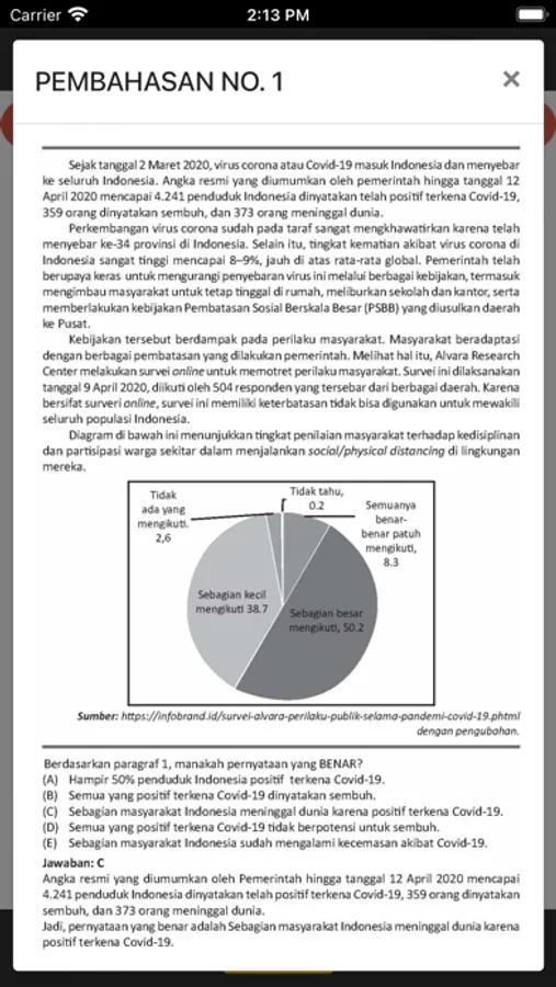Aplikasi Lembar Jawab Digital hadir secara khusus bagi pemilik buku Strategi Sukses UTBK SBMPTN SOSHUM 2023 yang diterbitkan oleh Genta Smart Publisher. Dengan aplikasi ini pemilik buku dapat dengan mudah mengerjakan soal-soal yang disajikan dalam buku melalui smartphone sehingga diharapkan dapat menekan penggunaan kertas. Cukup dengan memindai QR Code pada halaman soal dalam buku maka aplikasi akan menyediakan lembar jawab digital dan di akhir pengerjaan soal aplikasi akan menampilkan hasil nilai yang diperoleh beserta ulasan jawabannya.