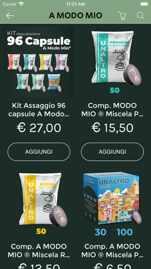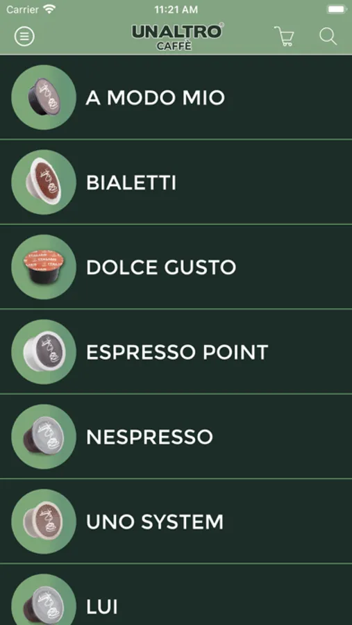 App per gli amanti del caffè. Vendita al dettaglio di cialde e capsule compatibili a marchio UNALTRO Caffè