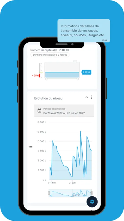 - Visualisations du niveau, de l'état ou de la localisation de votre équipement