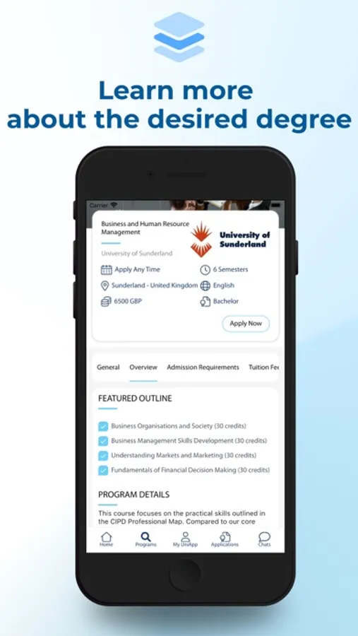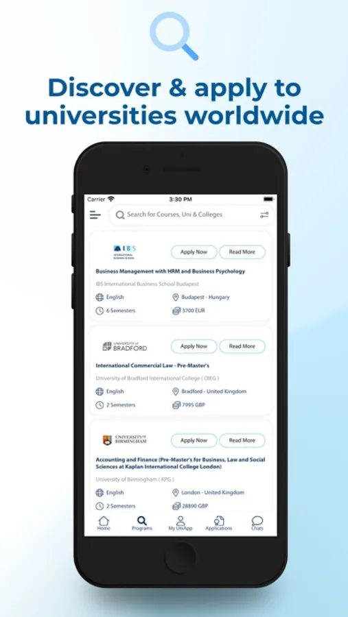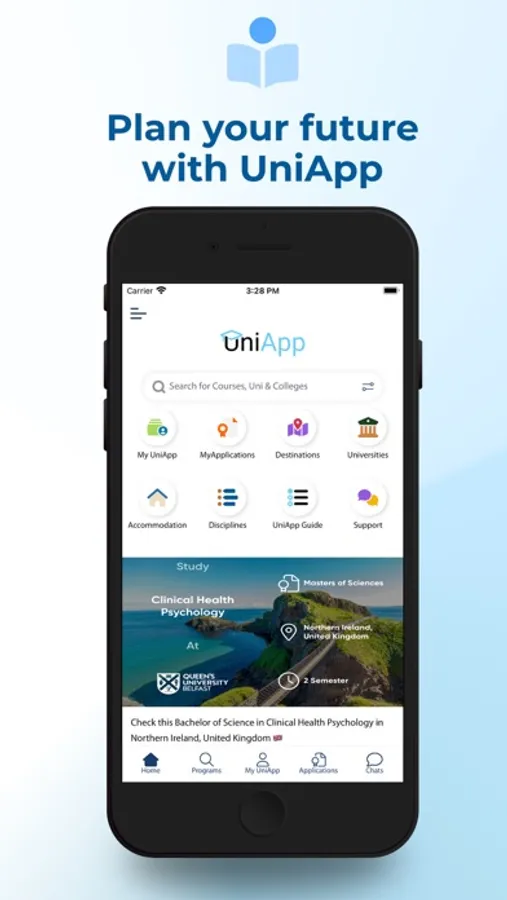 UniApp brings you top degrees from universities and colleges to study in Europe, the United Kingdom, the USA, Australia, Canada and many other countries. UniApp is easy to use; in short, as a student, all you need is to complete your UniApp profile; after completing it, you will be able to apply to multiple degrees in one single click.