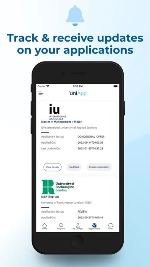 Download the app to manage your entire education application journey, get 1-on-1 support from our study agents to start your dream at the best universities, and easily submit your applications with free support by just using the chat button.