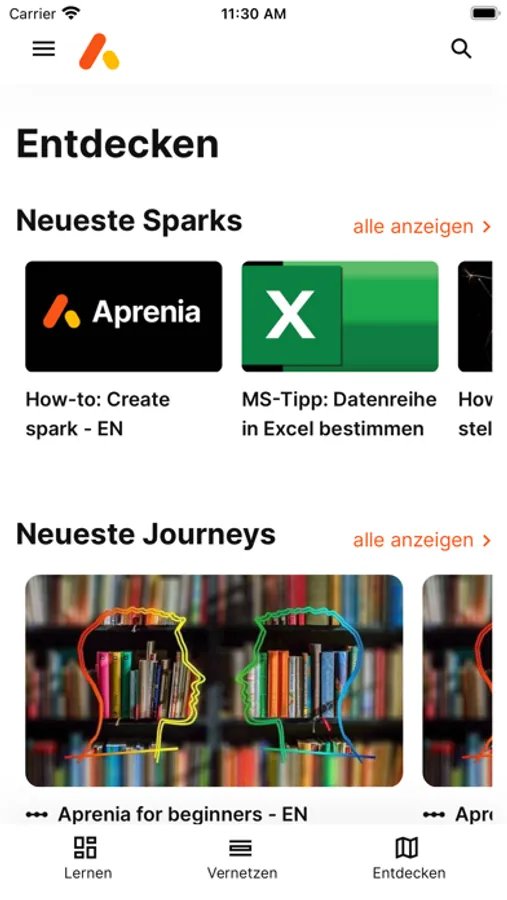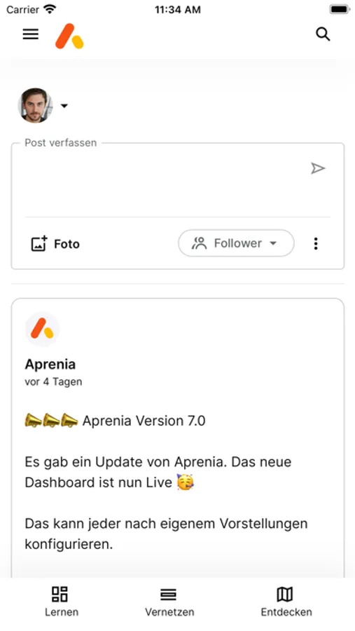Die App von Aprenia bringt den unternehmerischen Know-How Transfer auf die Mobilgeräte der Mitarbeiter. Basierend auf der Social Learning Experience von Aprenia bietet die App mobiles Lernen, den Austausch zwischen Mitarbeitern und die einfache Erstellung von Lerninhalten.