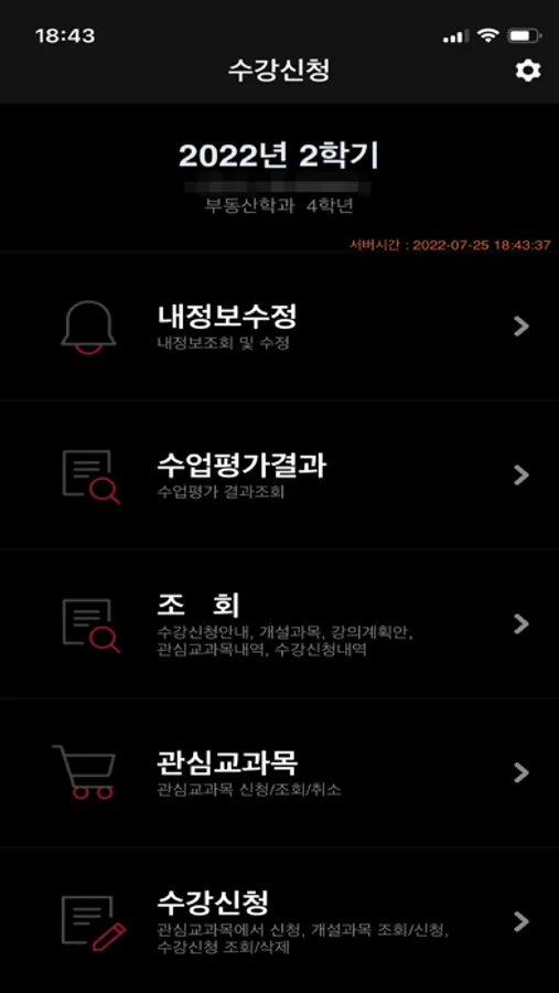 남서울대학교 모바일 수강신청 입니다.