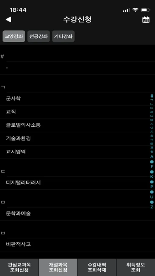 - 관심교과목 신청, 취소, 정렬