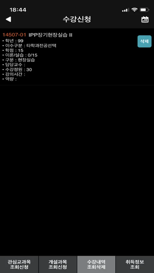 - 수강신청 조회 및 삭제