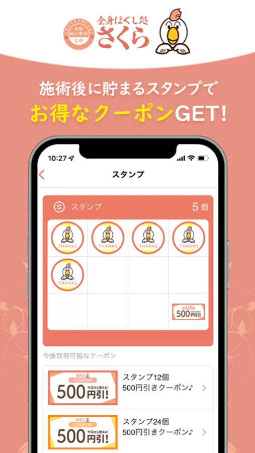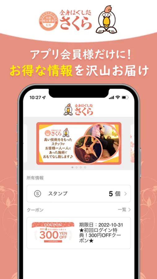 アプリを通して全身ほぐし処さくらの新着情報やお得な情報を受け取ることができます。
