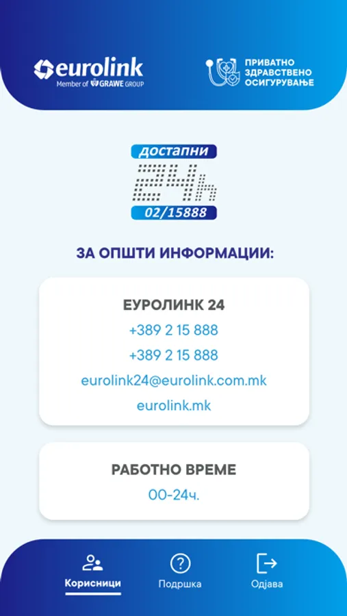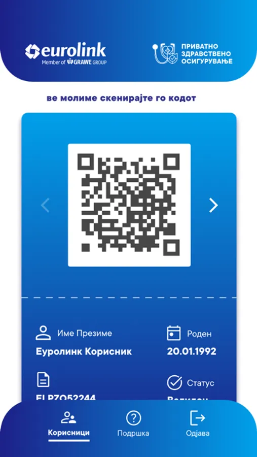 QR кодот овозможува лесно чување на сите важни податоци поврзани со полисата за приватно здравствено осигурување. Со еден клик достапни се информациите за полиса, дополнителните осигуреници и информации за лимитите на покритијата. На клик е достапна и 24/7 поддршката од Еуролинк осигурување за сите дополнителни прашања и потреби.