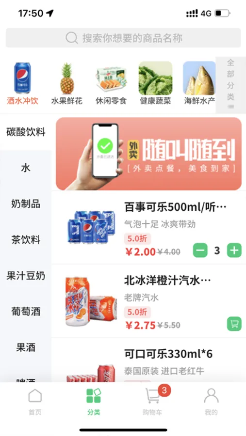 水果蔬菜、肉禽蛋奶、粮油调味、酒水饮料、