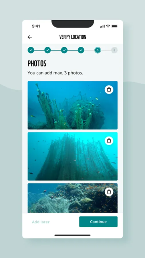 The app is only for confirming potential ghost net locations and reporting your own finds. Dive only according to your skills and use the positions shown on the map only to verify them. Recovery is done by professional divers with appropriate equipment and a recovery boat!