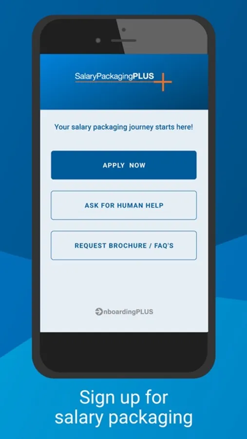 OnboardingPLUS simplifies the salary packaging sign-up process. It is for SalaryPackagingPLUS field agents and their customer organisations.
