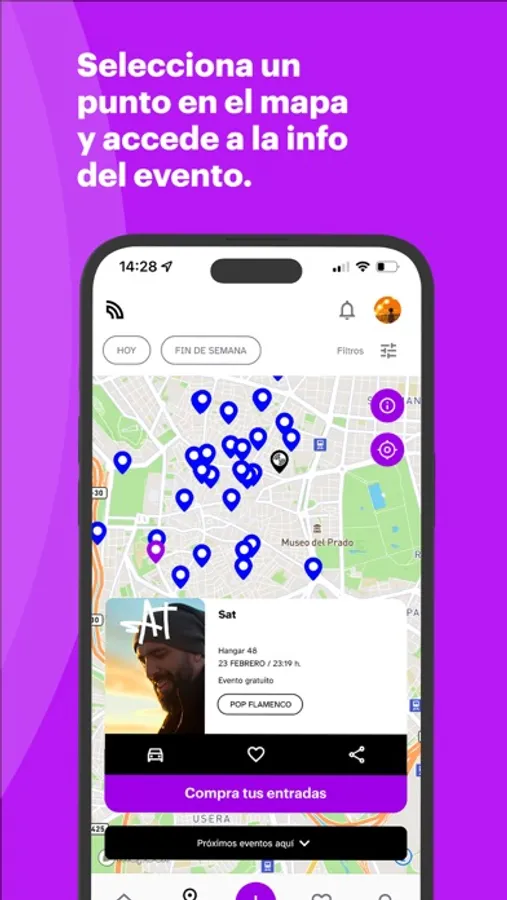 Live Music Radar es un mapa con geolocalización donde a parte de poder encontrar conciertos y comprar entradas también puedes saber dónde hay actuaciones musicales cerca de ti.