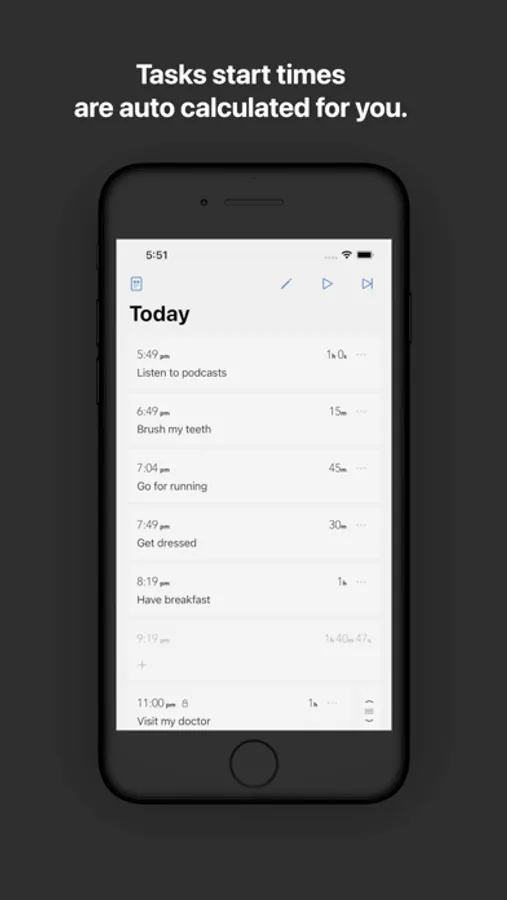 Where the app excels is when it lets you adjust your schedule on the go, for example, if you want to increase a specific task duration, you can adjust it with a quick drag (left/right) and all subsequent tasks will adapt to the new schedule instantly.