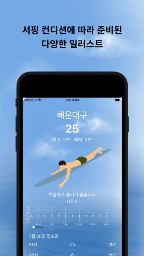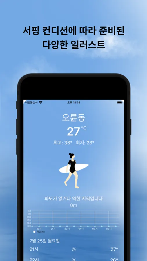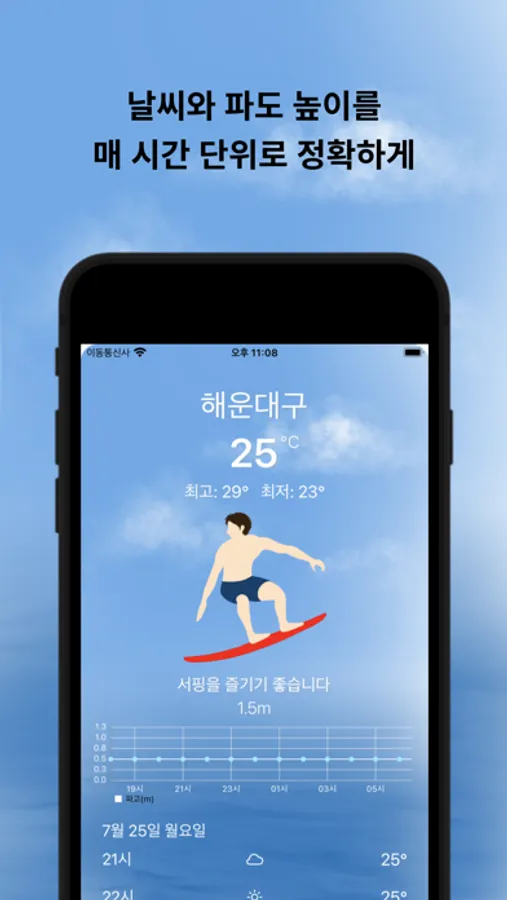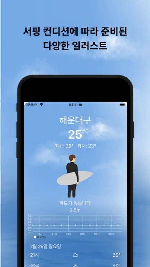 파도를 기다리는 서퍼들을 위한 날씨 앱입니다.