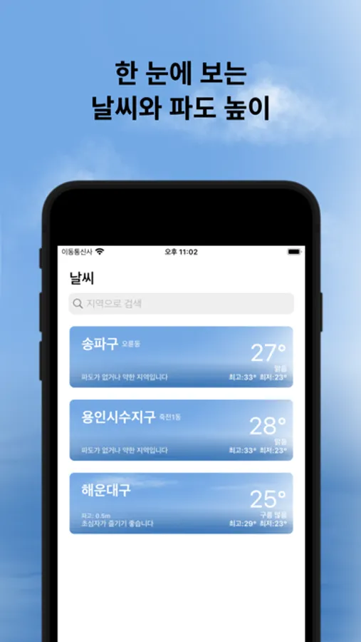 - 한 눈에 보는 날씨와 파도 높이. 메인.