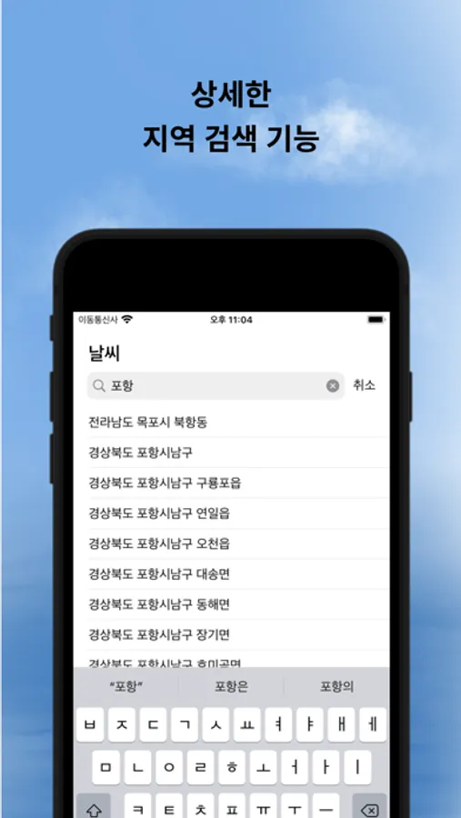 검색은 동단위까지 상세하게 검색이 가능하고 추가한 지역은 메인에 업데이트 됩니다.