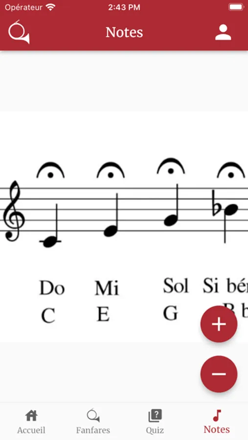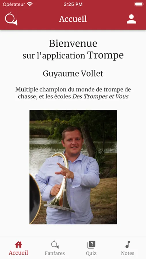 L'application donne également accès aux sons de l'ensemble des notes jouables avec une trompe de chasse.