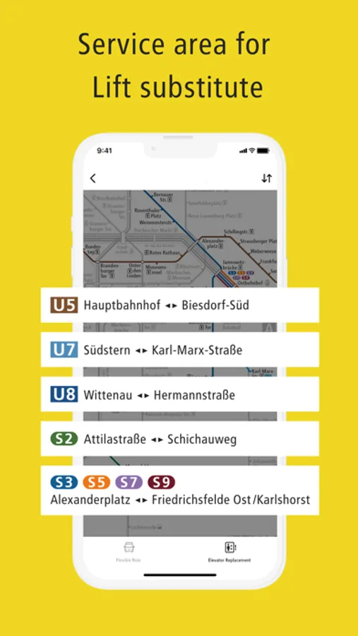 Lifts are broken, missing or there are non-functioning escalators? That can become a real problem for people with disabilities. From the end of 2024, the lift substitute will be available throughout Berlin- as required and without a timetable. You can find the current service area in the app or on the website.