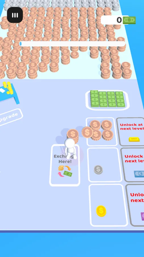 Collect different currencies and convert them to cash! Upgrade your way to being a tycoon! As you move forward, more valuable currencies will show up.