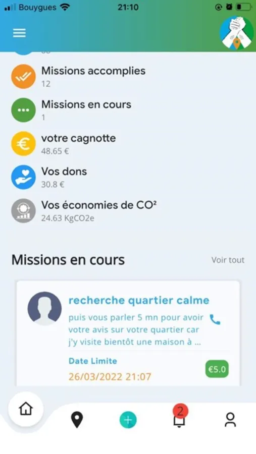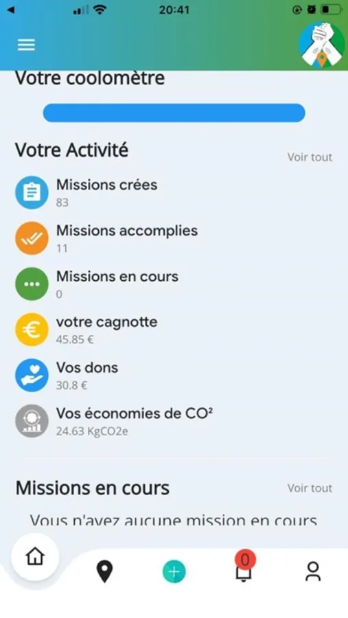 Rentrez dans la communauté MissionMe, où l'on compte les uns sur les autres, grâce à une appli simple à utiliser au quotidien. Une communauté d’entraide, bienveillante et décontractée, qui s'amuse à créer et remplir des missions utiles. Luttez aussi contre le réchauffement climatique en limitant vos déplacements inutiles et leurs émissions de GES.