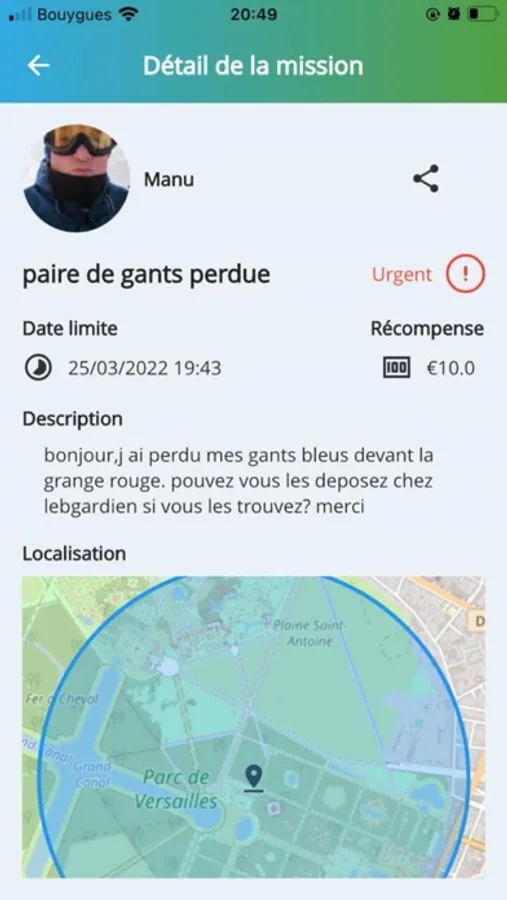 MissionMe est une application gratuite. Elle est à la fois une application mobile d'entraide entre particuliers, une messagerie géolocalisée et un réseaux social bienveillant !!!