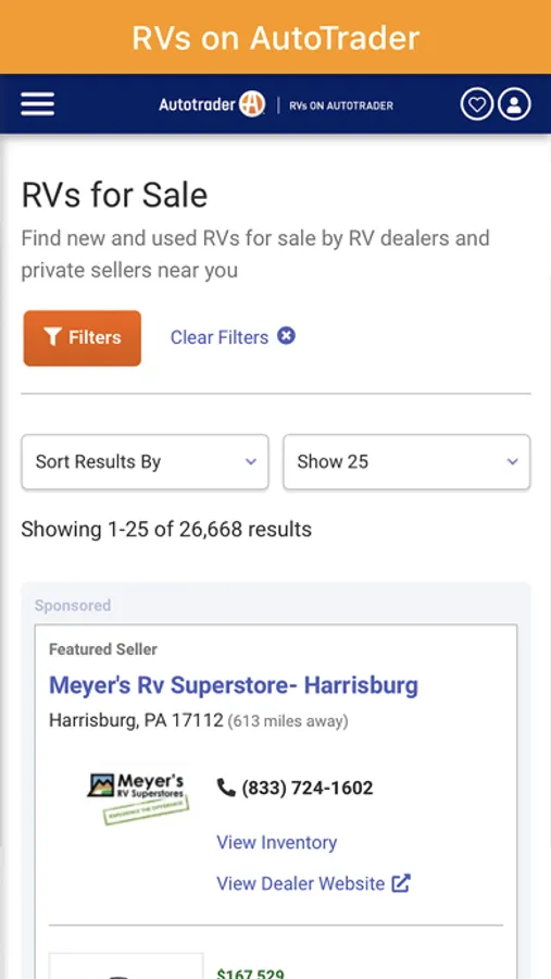 Are you looking to buy a Recreational Vehicle? RVs on Autotrader helps you find new RVs for sale through classifieds posted by RV dealers. You can also find used RVs for sale by owner and private sellers - pre-owned classic, old and late model RVs. Popular models include the Thor Four Winds, Forest River Georgetown, Coachmen Freelander, Newman Bay Star, Jayco Jay Flight, Coachmen Catalina, Forest River Salem, Heartland North Trail, and Northwood Arctic Fox. The Keystone Passport, Jayco Jay Feather, Heartland Road Warrior are also great choices. Search class A - B - C motorhomes, travel trailers, truck campers, popup campers, teardrop trailers, fifth-wheel trailers, and toy haulers. RVs on Autotrader also helps you check RV prices or sell RVs. If you're lucky, you can even find a great deal on a cheap RV for sale near you!