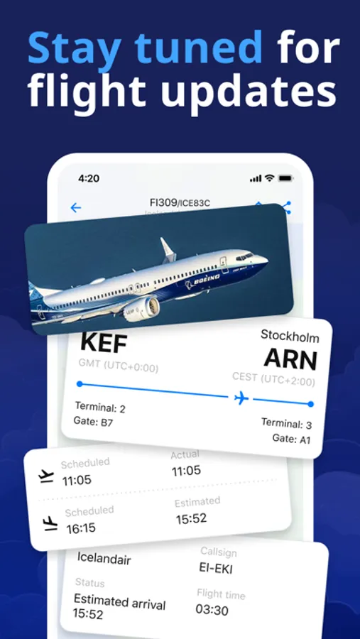In our application, you can view up-to-date information about flights in more than several thousand airports around the world. The information in our application is updated immediately after the appearance of changes, this will help you not to be taken by surprise.