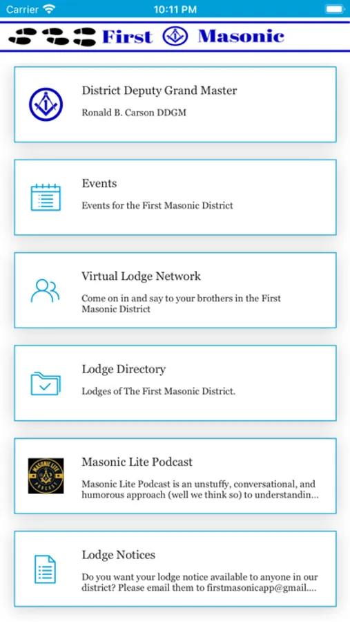 The First Masonic District of Pennsylvania created this app for our District only. This app has no affiliation with The Grand Lodge of Pennsylvania other than all members, lodges, and appendant bodies are governed by The Grand Lodge of Pennsylvania.