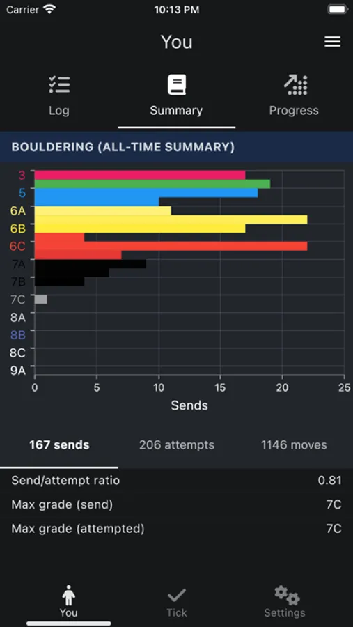 Are you serious about you climbing? Seamlessly track your climbing training with Blocer's intuitive, but powerful, visual ticking system, and track your performance over time with in-depth statistics about your efforts. Log bouldering and sport climbing in any gym or outdoor crag contributed by the community or whose administrators have joined Blocer.