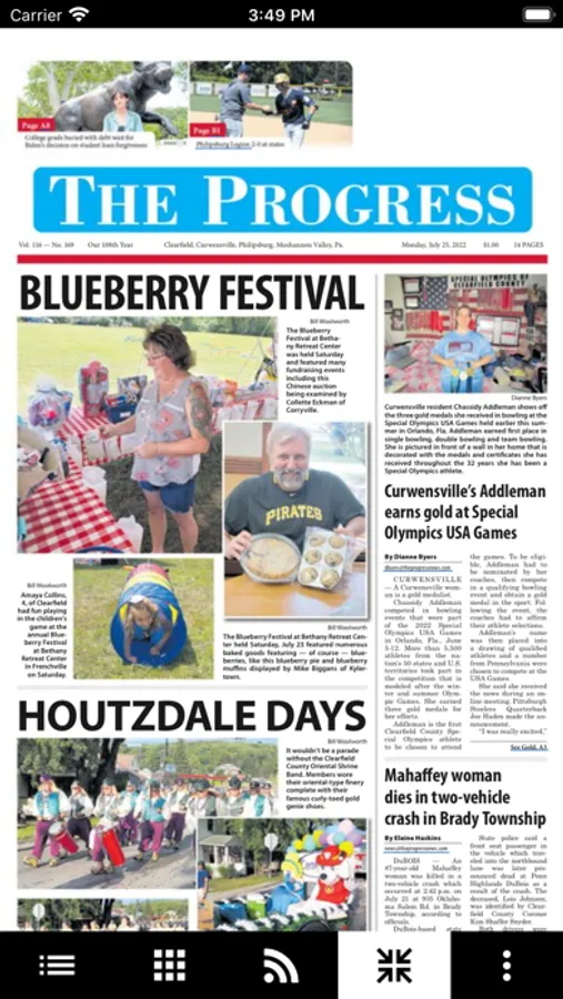 The Progress newspaper covers local news and sports in the Clearfield, Curwensville, Philipsburg and Moshannon Valley areas of western Pennsylvania. The Progress offers home delivery six days a week and provides 24/7 coverage on its website at theprogressnews.com and on its mobile app.