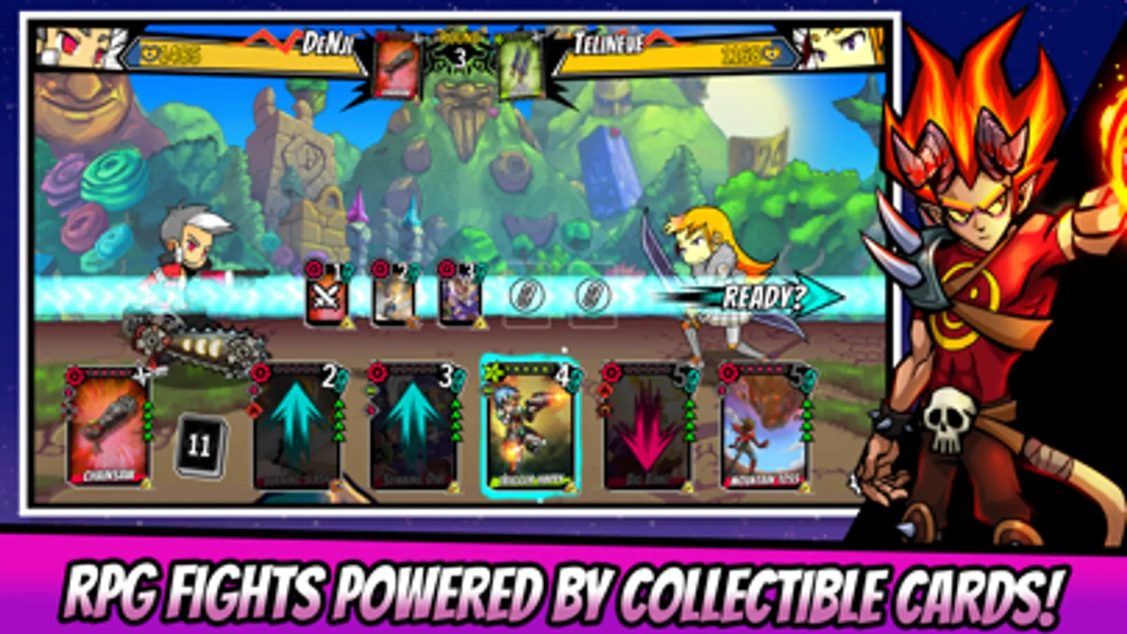 Defeat everybody!: Compete for Arcana Cards in this crazy mix of CCG, RPG & anime battle games, grow the collection of your OC, and use them to become the ultimate Fighter of Fate!