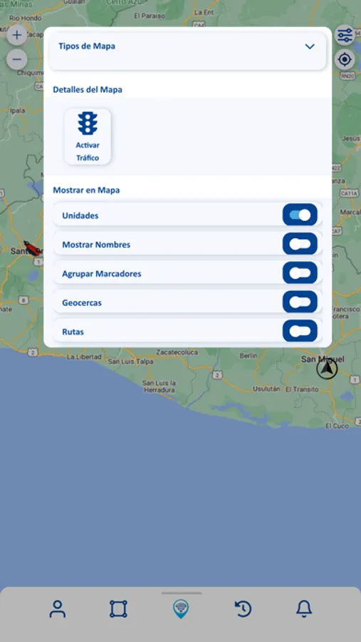 * Ubique su unidad o dispositivo en el mapa y haga seguimiento de la misma.