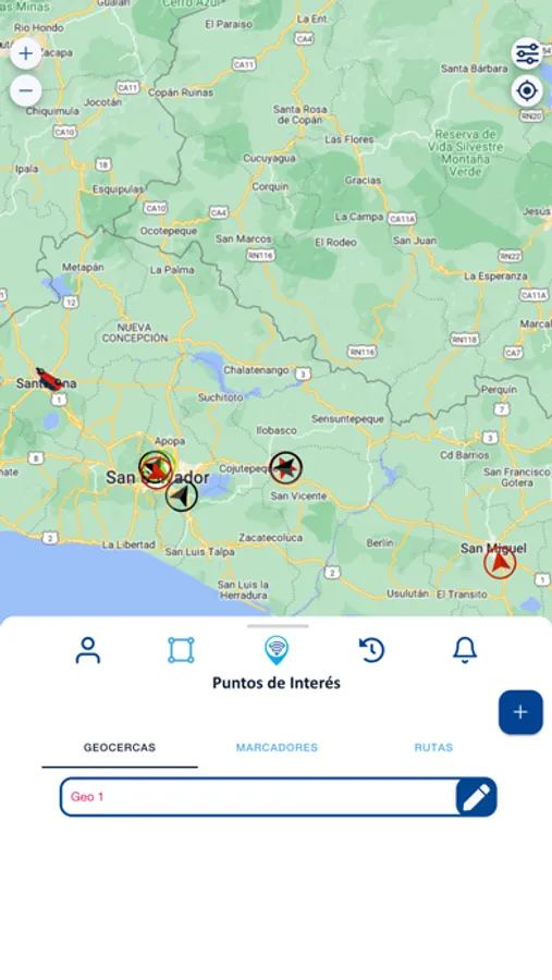 * Puede gestionar rutas, marcadores, geocercas sobre el mapa.