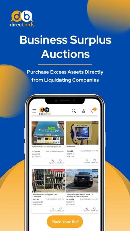 DirectBids is the premium online marketplace for used medical, laboratory and business assets. Never miss an auction with the DirectBids mobile app. Conveniently bid, pay and schedule pickups on your phone. Local pickups and shipping available.