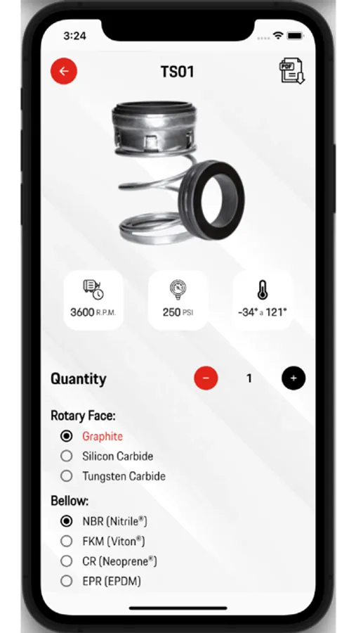 You can also check in the application which materials are recommended for your mechanical seal according to the fluid used by your industrial process