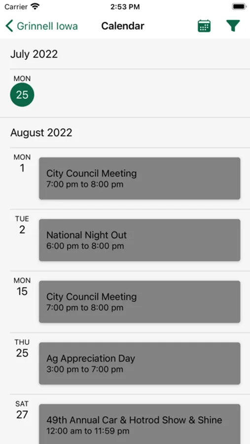 Grinnell Website Mobile App for access to the city of Grinnell website with a mobile device.