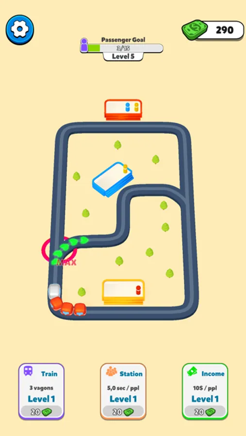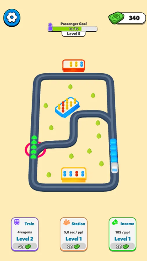Touch on the rails to switch rails while keeping the passenger destinations in mind.