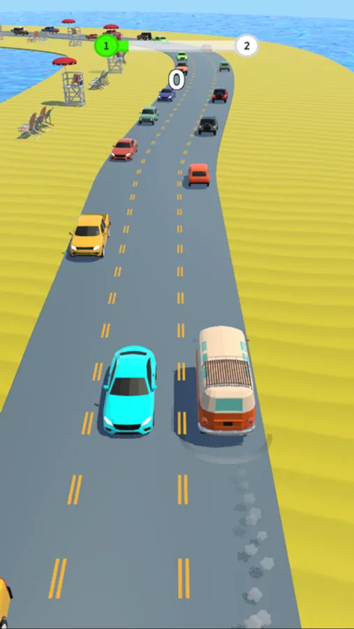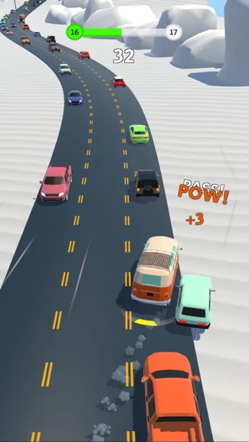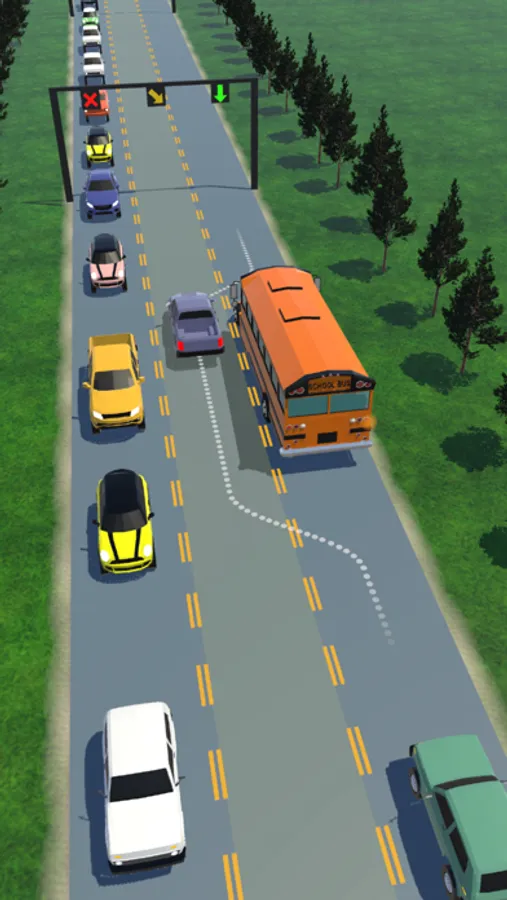 Pass cars via middle lane but watch for upcoming traffic when lane marked red.