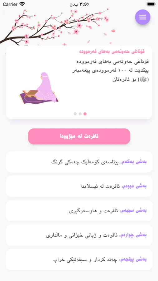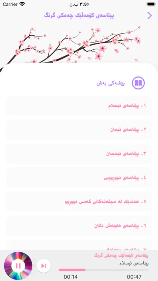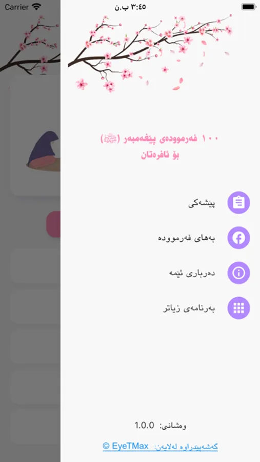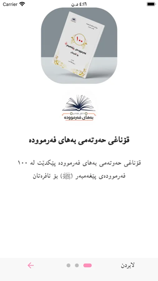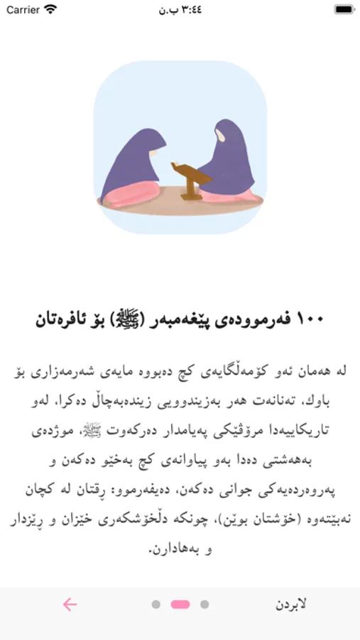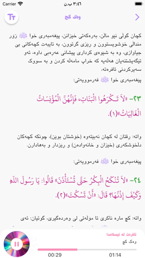 لەم ئەپڵیکەیشنە دەتوانی گوێ بیستی خوێندنەوەی فەموودەکان و ماناکەی بیت بە ناوەزەترین شێواز