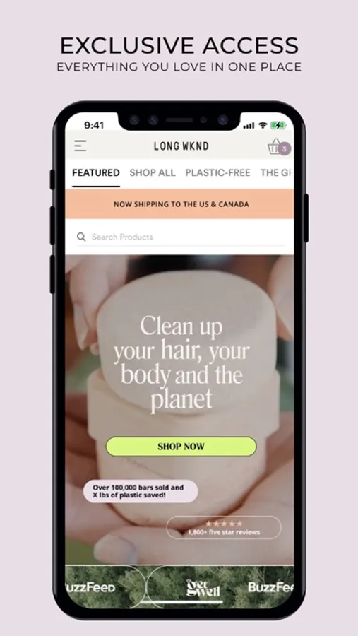 Get rid of plastic from your personal care routine once and for all! Long Wknd’s app gives you first dibs on sustainable shower solutions that are better for you and the planet. The best part? You'll be the first to know when our best-selling items are back in stock before anyone else! Enjoy easy browsing and exclusive previews of our award-winning hair and body collections all in one place. Did we mention you’ll get exclusive discounts and extended sale access at your fingertips? What are you waitng for? Get treated like the V.I.P you already are.