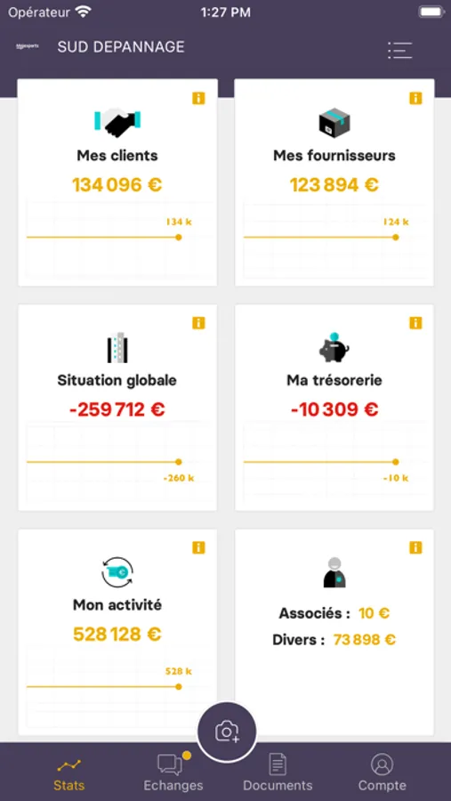 MAJEXPERTS est une application à destination des clients du cabinet qui permet la transmission des pièces comptables de manière simple et rapide. Chaque client a un accès personnalisé et peut ainsi consulter en temps réel ses données financières et indicateurs de suivi.