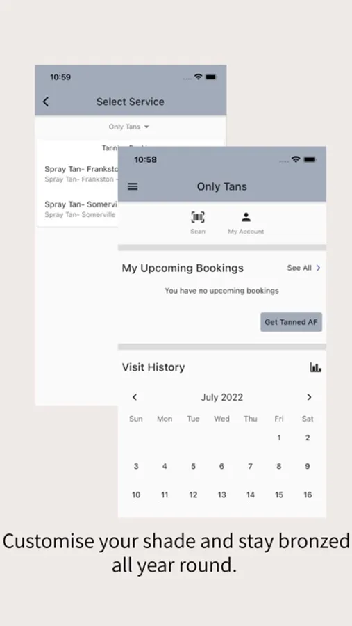 Contactless and convenient bronzing spray booths, customise your shade and stay bronzed all year round.
