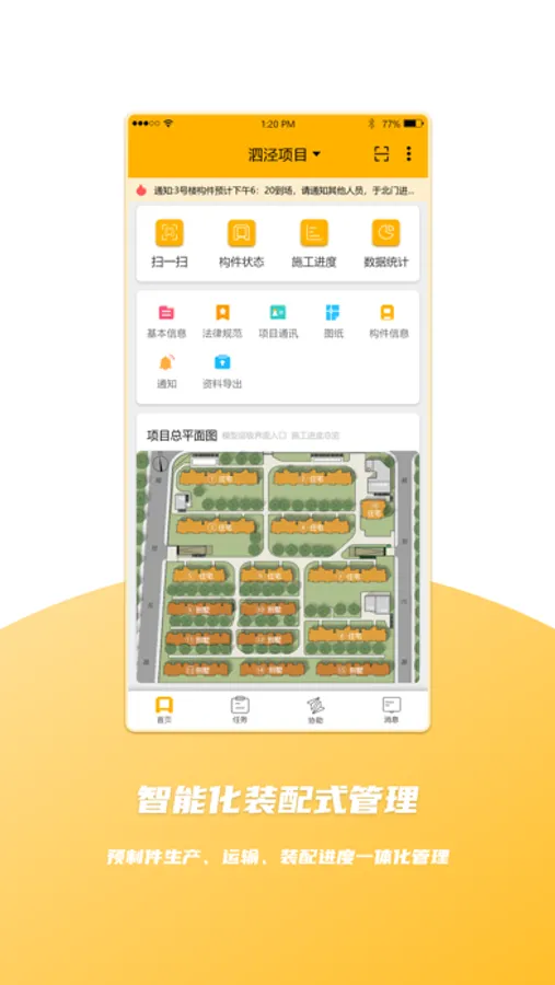 “装配式管家”主要包括填报构件状态等信息、三维展示构件装配进展情况、构件数量统计、构件断供预警、图纸、规范查询、资料导出等功能。可用于装配式构件的生产下单至现场吊装、灌浆的全过程管理。