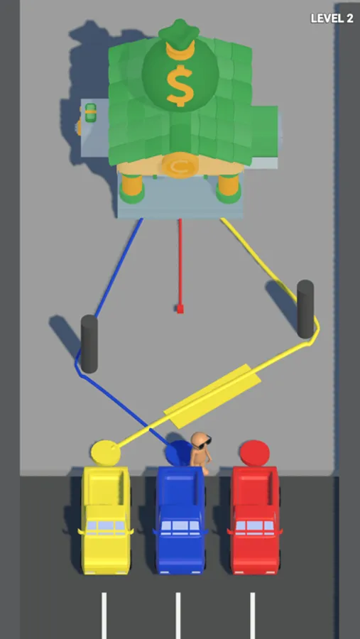 Match the right rope with the right car! Make sure the ropes are pulling your way properly! Don't forget the camouflage spots! Pipes will help you!