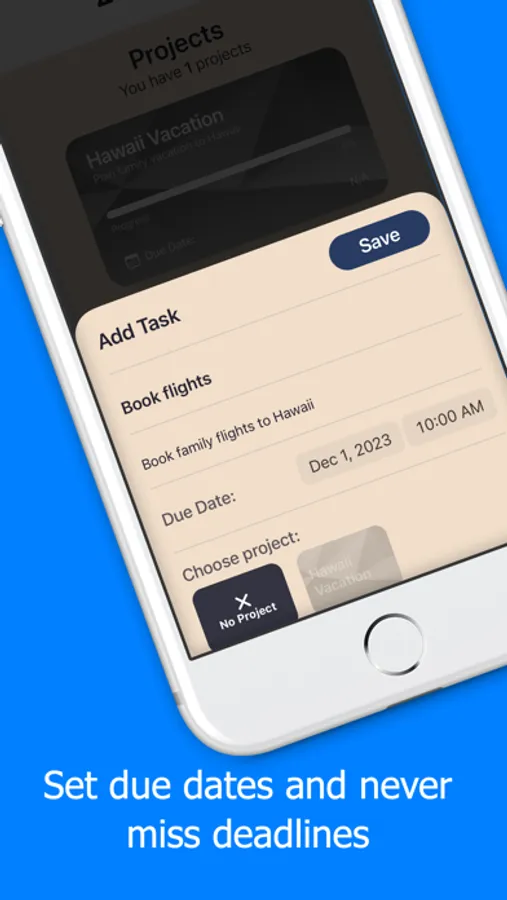 * Set due dates and never miss a deadline again