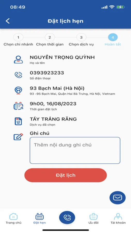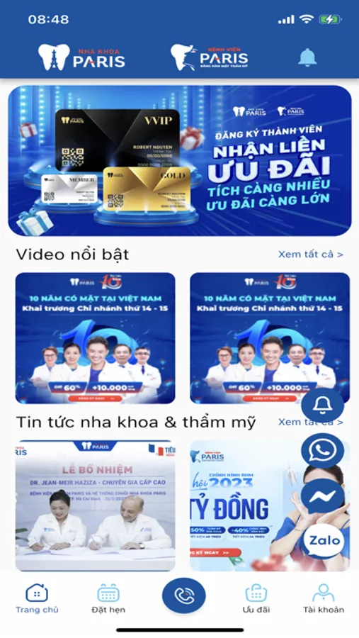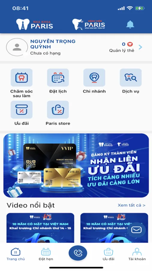 Ứng dụng dành cho khách hàng của Nha Khoa Paris:
